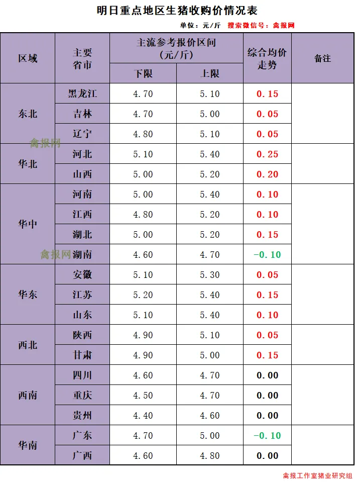 (1)明天(4月29日)全国主产区生猪综合平均报价4.95元/斤,较上一日报价上涨了0.07。多地再度反弹上涨,调整主流幅度在0.10-0.25元/斤。(2)猪价高歌猛进,标猪均价“破4入5”,北方多地猪价上涨超2元/公斤,养殖端挺价心态逐步松动,市场逢高增量出栏的现象有所增多。猪价重心上移,市场购销情绪变化,二育以及屠宰场抄底心态减弱,养殖端逢高出栏现象增多。(1)2026年4月24日,国家发改委公布最新一期(4月第4周)价格分析。生猪未来仔猪育肥模式的生猪养殖头均亏损445.52元。肉鸡受前期补栏减少及养殖难度上升影响,毛鸡出栏偏紧,屠宰企业收购难度增加。未来肉鸡养殖预期盈利1.21元/只。蛋鸡受五一备货拉动,市场需求提升,价格延续涨势。未来蛋鸡养殖盈利14.47元/只。