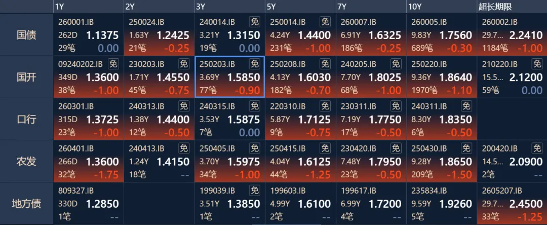 利率在连续调整了3天之后,今天全面下行,各期限下行幅度在1bp左右,不过市场整体买的情绪并不高涨,一方面是债市在经历调整之后,多空难免有分歧;另外就是临近月底和五一假期,买卖清淡是常态。