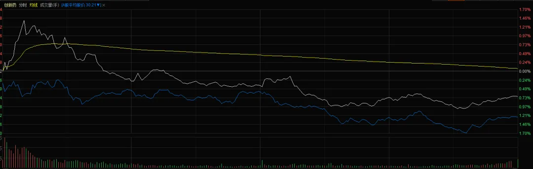 另外A股的创新药指数也翻绿,但创新药龙头普涨(如下图,来源chocie)。所以,医药板块今天走势高度分化,明显是机构资金借上攻机会,根据标的业绩(分化)做行业内调仓,去弱留强。所以参与医药行业未来机会,优选标的,其次才是指数。