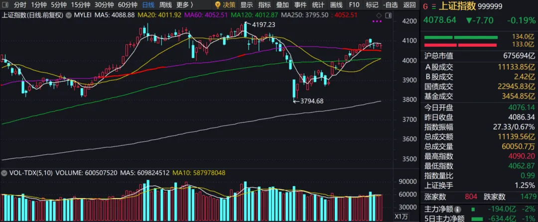 盘面特征:上证在4050-4080点一带窄幅整理,煤炭、燃气、氦气防御板块维持相对热度,但板块内部分化加剧,中小盘股继续承压