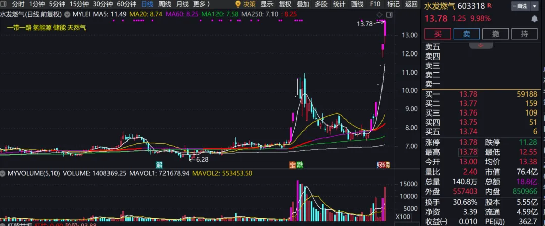 | 水发燃气 | 7天6板涨停 | |