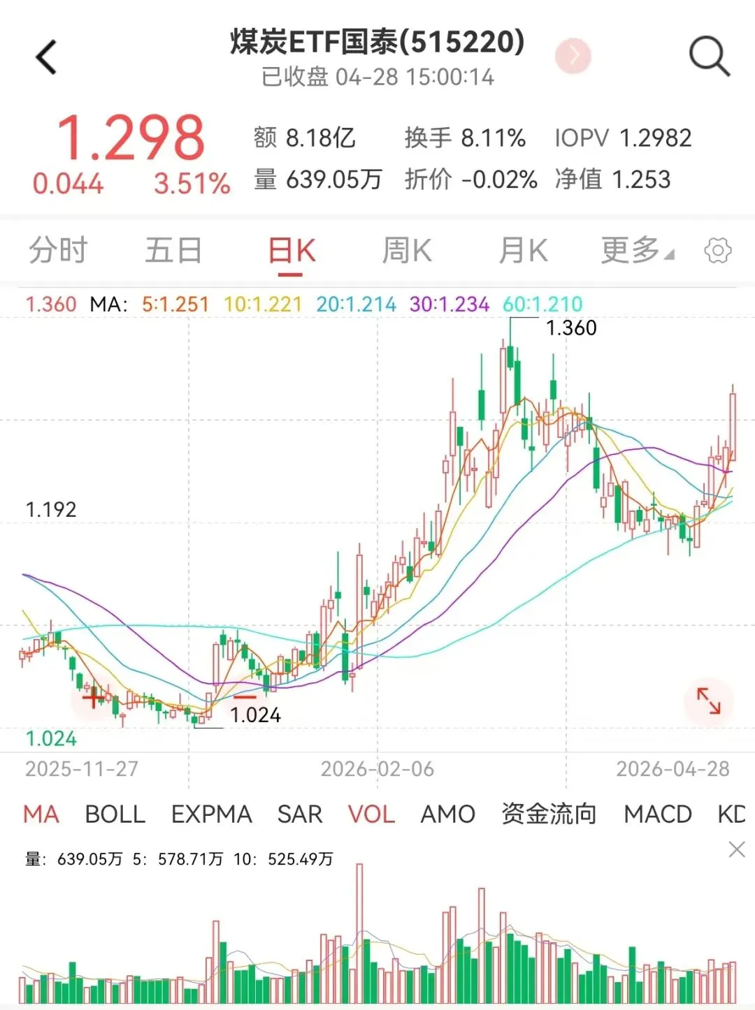 此前,地缘冲突风险有所缓和,煤炭板块经历了较为充分的回调。当前油价仍在高位运行,煤炭库存有所下降,电厂日耗同比增长,国内供给同比小涨,煤价淡季依旧实现上涨,旺季或有望超预期。综合而言,煤炭作为主要能源的地位短期难以撼动,供给刚性及成本上升有望支撑煤价。一方面美伊地缘冲突尚未完全平息,全球能源价格易涨难跌;另一方面煤炭板块高分红特征突出,具备优质红利配置价值,感兴趣的投资者可关注全市场唯一的煤炭ETF(515220)。