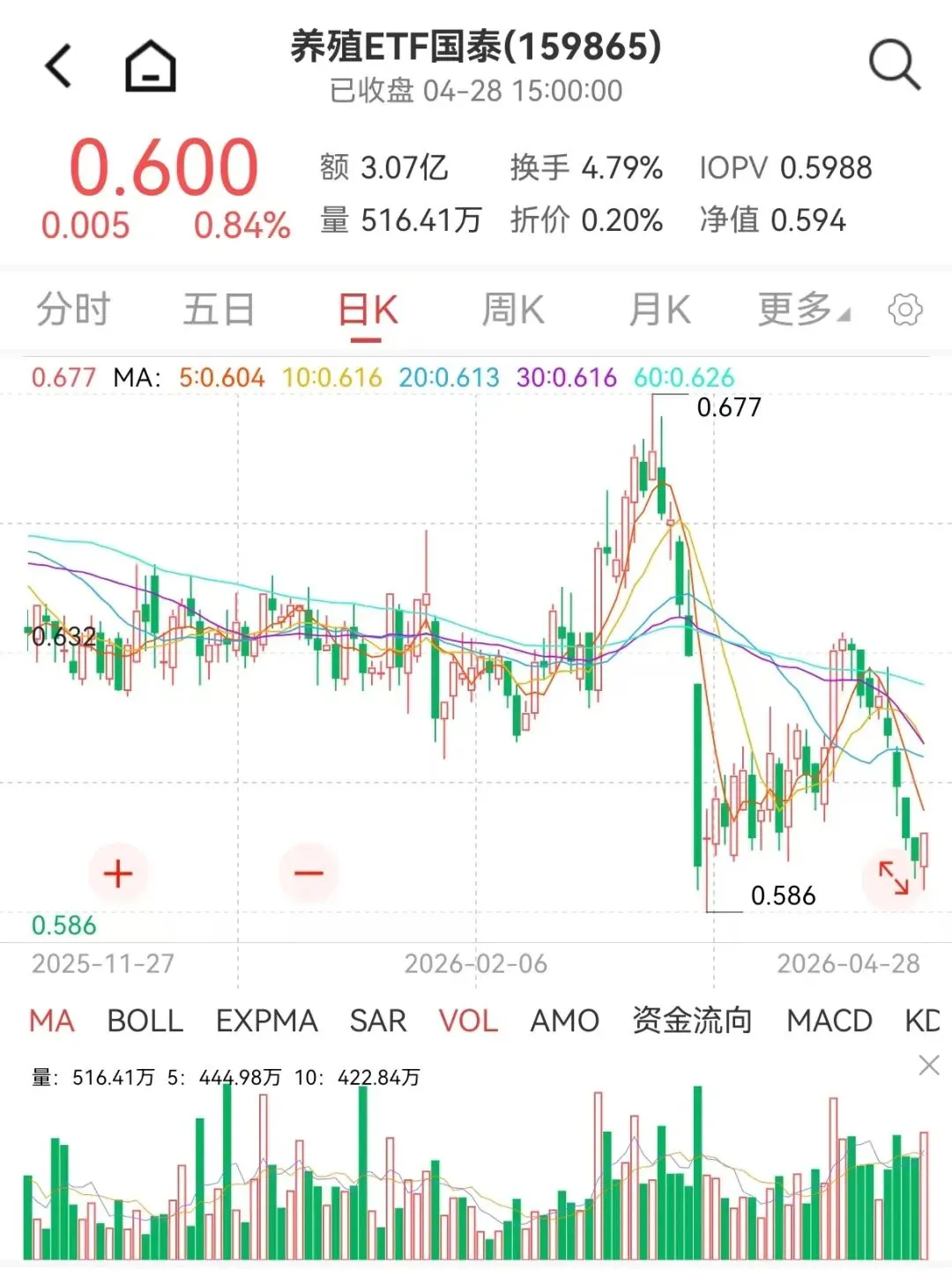 今日午后养殖ETF(159865)逆势飘红,上涨0.84%。