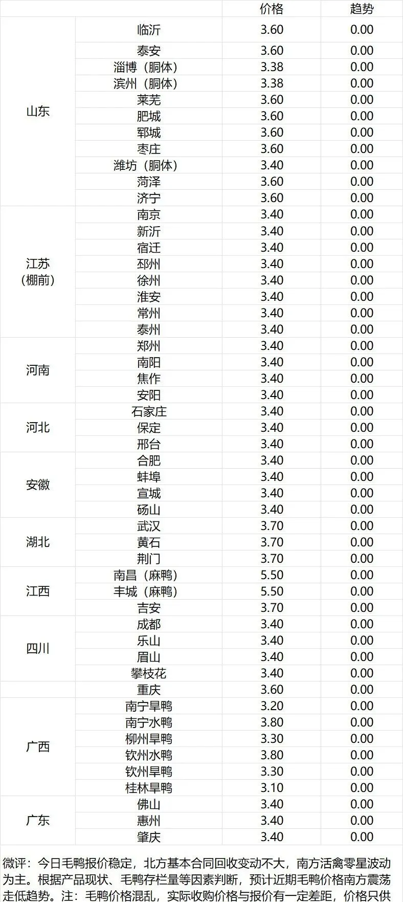2026年4月29日毛鸭价格行情:(单位:元/斤)