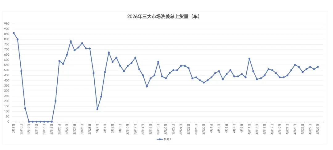 三大市场今日总上货530车,较昨日增加20车,好货还行价格稳中见硬,主流货能稳住,一般以下货慢、落,大车货、拉姜、次货明显落钱难出售