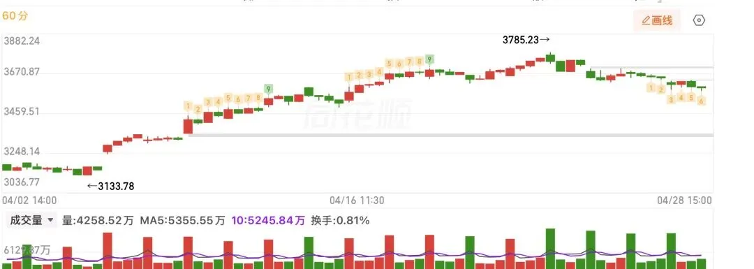 市场分化严重,涨停跌停家数都不少,而且不管指数涨跌,大部分时间都是超过一半的个股在下跌。今天证券稍微动了下,也就是托举一下指数而已。市场想要起行情最快也要到五一假期以后了,这几天一边是节前兑现的抛压,一边是一季报最后披露完成,交易难度不小。