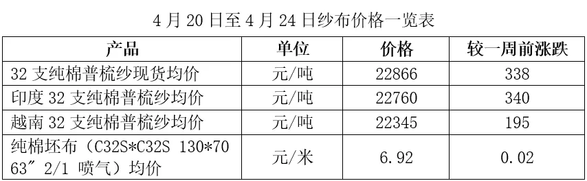 产品端:国内外棉纱价格上涨,坯布价格上涨。