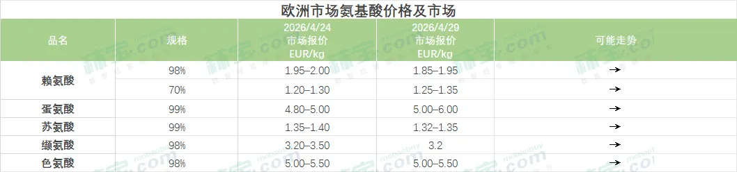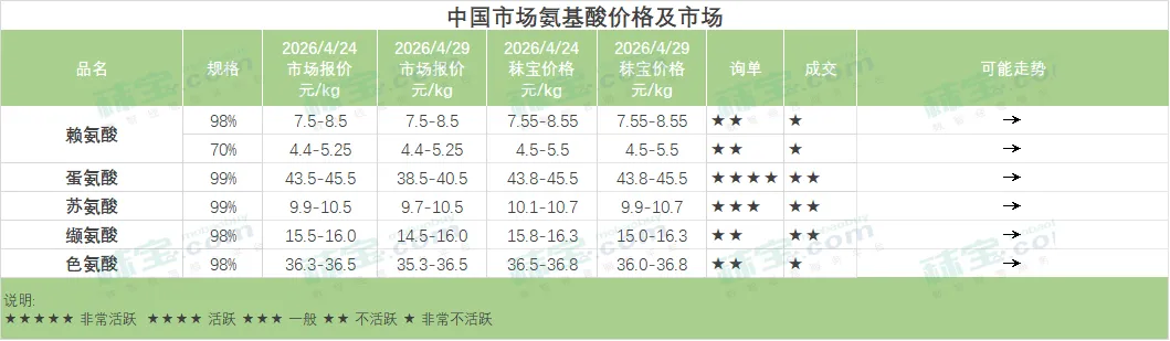 中国氨基酸市场各品类厂家报价稳中窄幅弱调,下游用户节前补库需求不强,消耗现有库存为主。赖氨酸市场主流厂家报价持稳,部分工厂节后再报,下游用户补货情绪不高,节前刚需议价成交。蛋氨酸市场厂家高低搭售,交付前期订单为主,终端大多谨慎观望。苏氨酸市场厂家继续挺价,终端补货情绪低迷,实际购销一般。缬氨酸市场现货报价偏高,询单氛围一般,终端维持随采随用。色氨酸市场发货为主,下游用户节前询单交投不积极,实单议价成交。