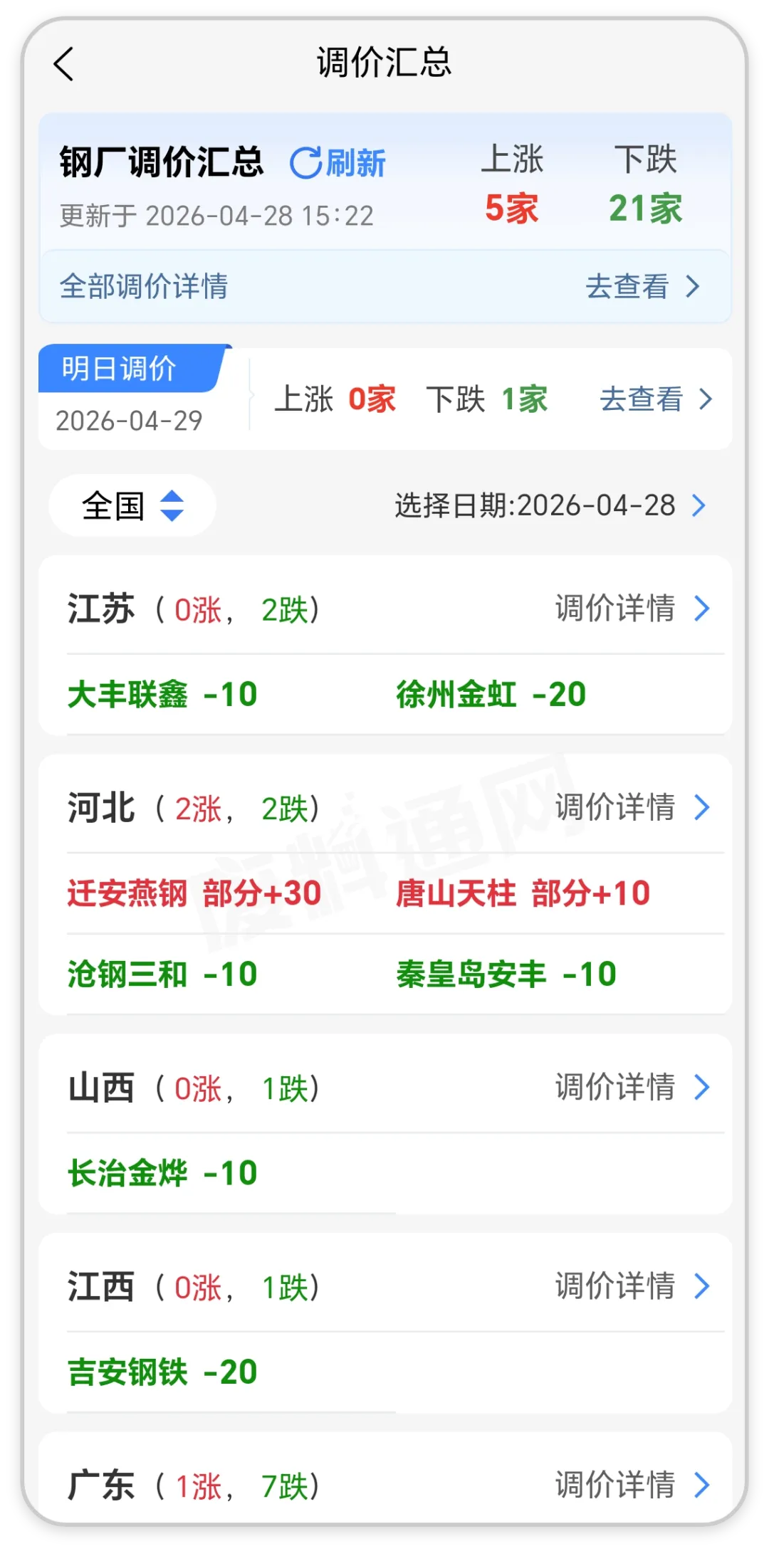 4月28日00:00时起,江苏【徐州金虹】钢铁所有料型统一下调20元。最新价:钢刨花一级2160,钢刨花二级2150,数控一级2130,数控二级2120,普通屑一级2090,普通屑二级2080,原厂纯净压块2130,油屑压饼2090,长丝(原厂)2060,不含税