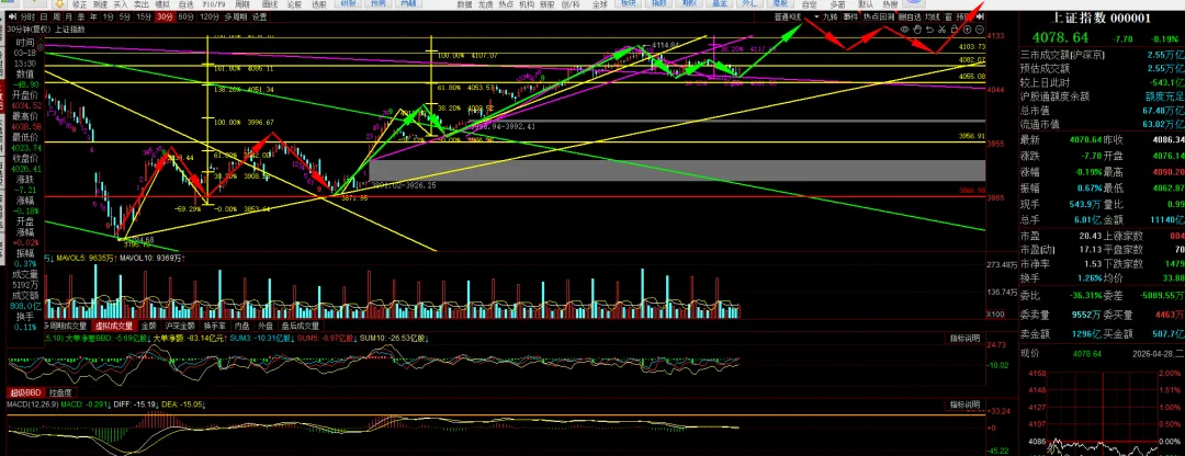 上证30分钟,应该还有高点,但是大概率是阶段性的高点了,后面开始调整。压力4126,支撑4060