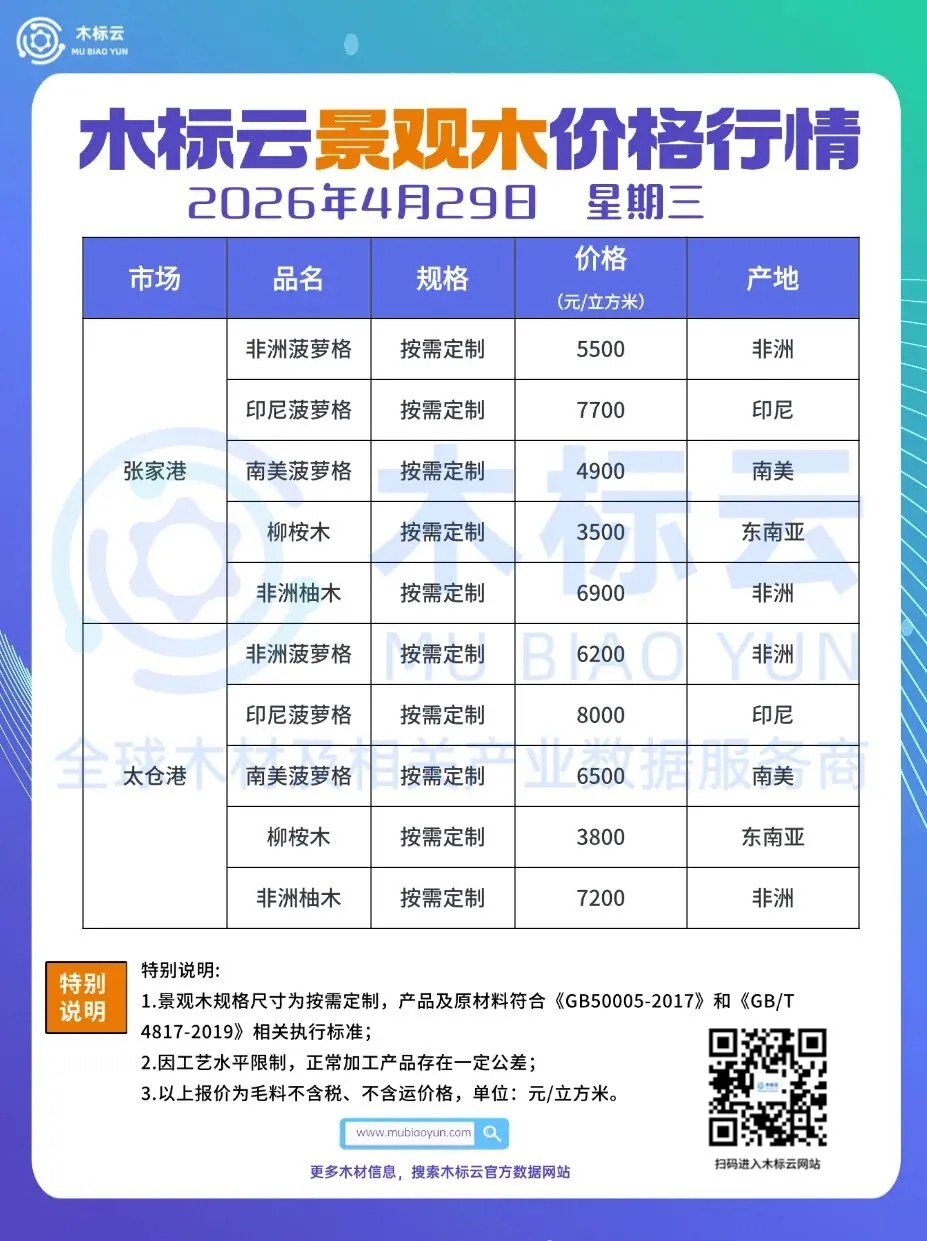 4月29日 | 木标云进口原木及成品市场价格行情