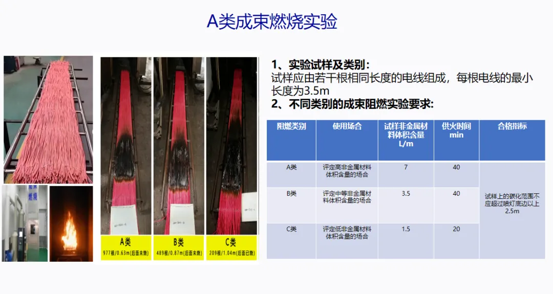 A级阻燃 ≈ 明火下只烧一小段就自己灭了,火不会顺着电线跑