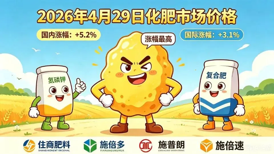 截至2026年4月29日10点30分,国内氮磷钾、复合肥及硫磺市场迎来新一轮波动,硫磺以超强势涨幅领跑全场,成为今日肥市最靓的“仔”。国内各产区价格分化明显,国际市场受地缘冲突影响持续高烧,内外价差进一步拉大,农资市场可谓“涨”声不断、热闹非凡。