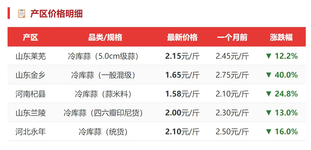 大蒜主产区行情周报