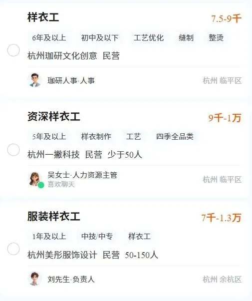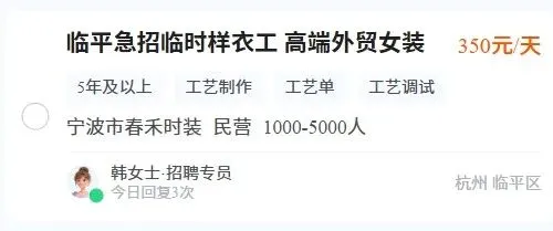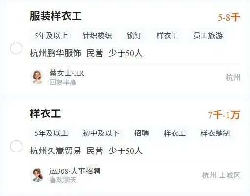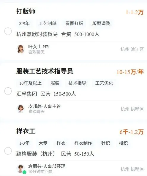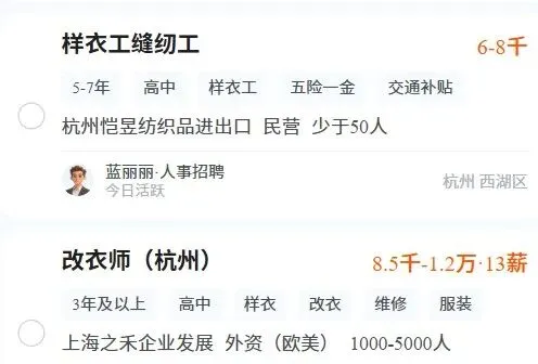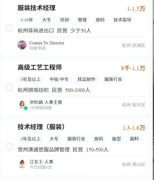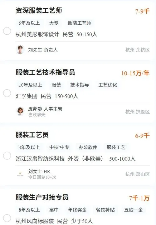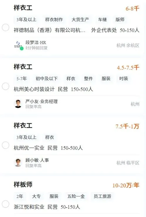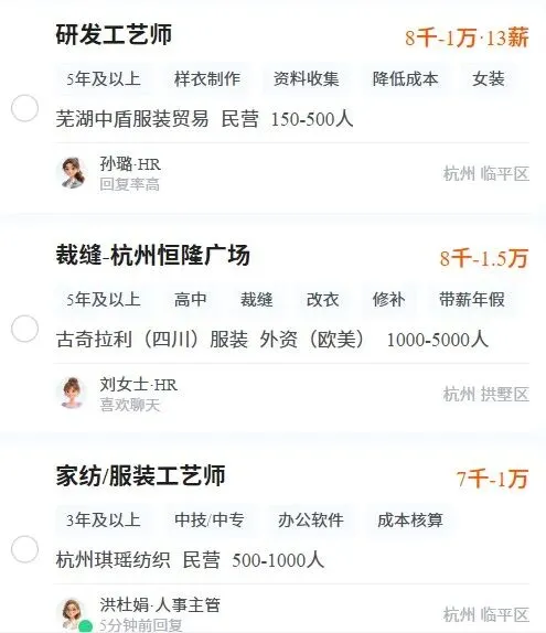 >杭州服装生产行情一路飘红,人才需求每天更新