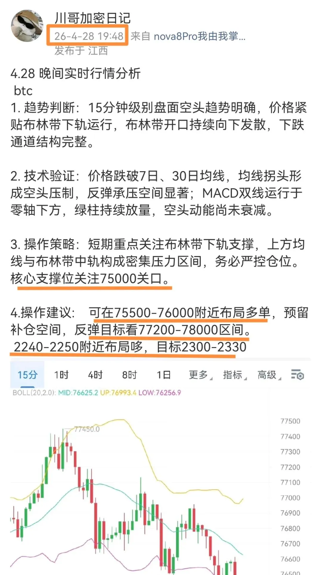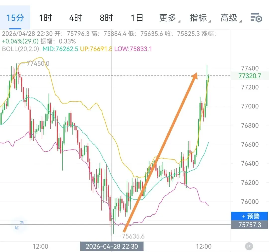 昨晚八点公布操作思路,十点半行情精准回落至进场点位,川哥顺势入场,行情止跌后稳步震荡上行。节奏虽缓,但走势完全符合预期,今日中午顺利抵达目标位置。昨晚休息仓促,没能稳住大家持仓心态,不少伙伴提前止盈离场。即便没有吃满全部利润,也稳稳斩获千点收益,整体收获满满,再度完美拿捏行情!