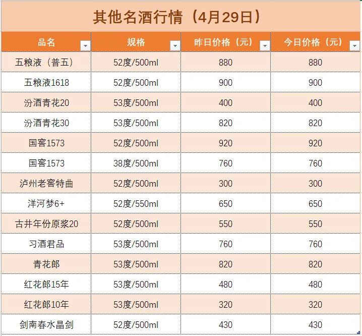 4月29日各品牌名酒采购行情价,仅供参考具体以实时为准!友情分享不代表某个公司批发价.