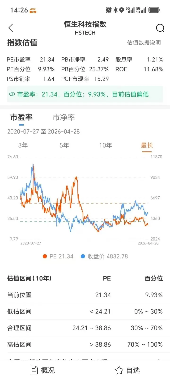 恒生科技估值已经砸穿历史地板,市净率卡在近一年1.22%极端低分位,比过去98%的时间都便宜。南向资金天天逆势扫货、越跌越买,可指数就是反弹乏力、阴跌不止,关键支撑位反复试探,怎么都站不稳。实话难听,但必须说透:这不是短期情绪砸盘,不是资金短期跑路,是恒生科技几十年的底层定价逻辑,彻底、永久变天了。外因只是顺带砸盘的推手,真正封死上涨空间、长期压着指数抬不起头的,就两件事:成分股天生结构畸形、内生盈利刚性塌方。双重死局叠加,短期根本无解。把这一篇吃透,不用再盲目抄底被套,不用跟风追涨杀跌。未来一两年恒生科技的涨跌节奏、拐点信号、风险边界,一眼看清。