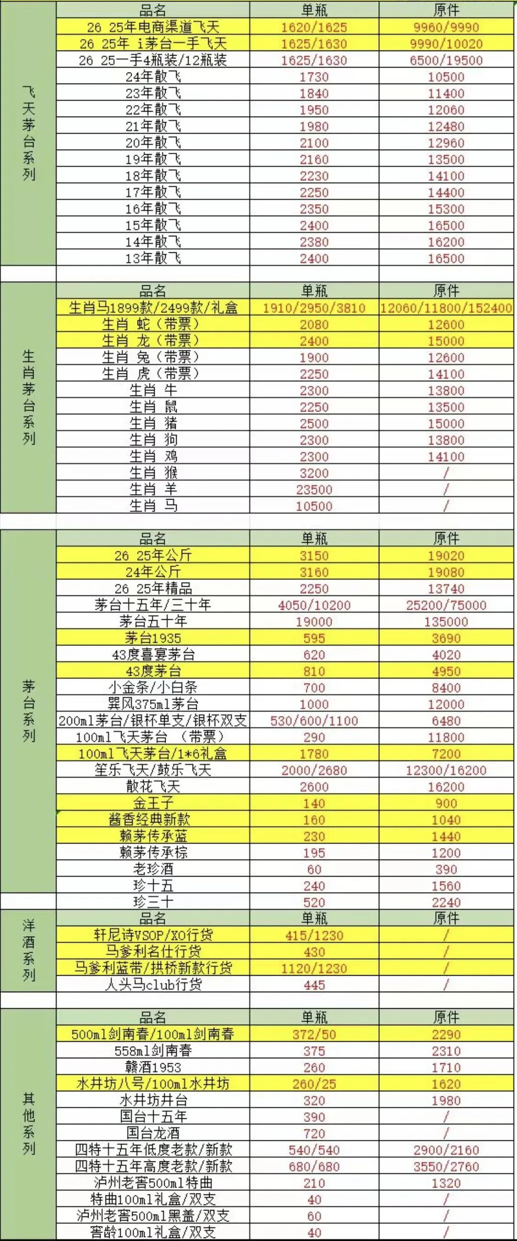 由于白酒飞天茅台价格存在实时变化、地区差异等原因,报价仅供参考。