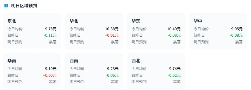 | 新疆 | 9.36 | | | ↗上涨 |