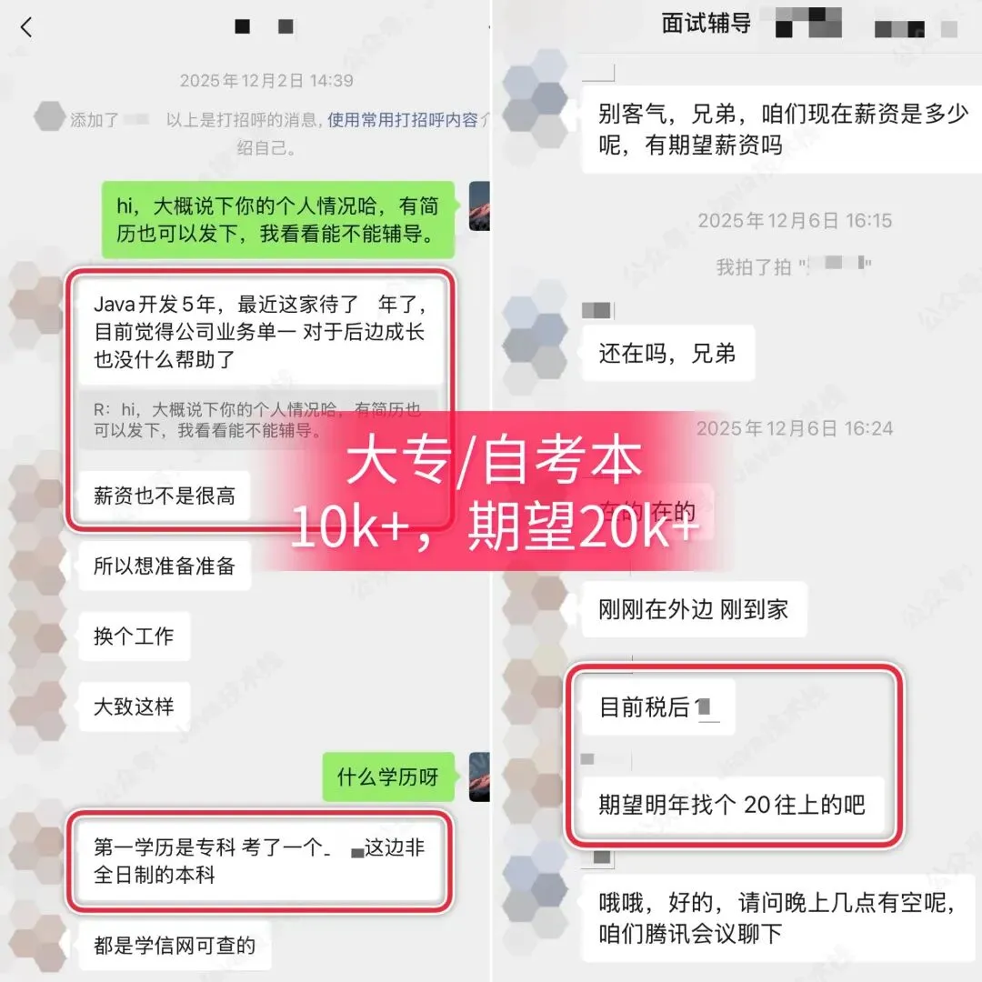 所以,这兄弟选择加入我们的「面试辅导」冲一把,希望能够冲击更好的机会(20k+),也能知道自己的上限在哪。