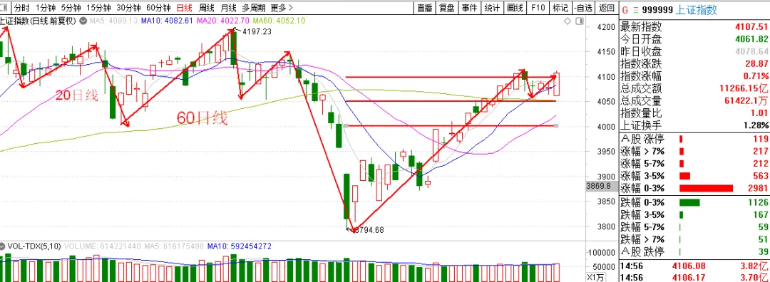 你看,一根中阳线,轻轻松松过了4100。