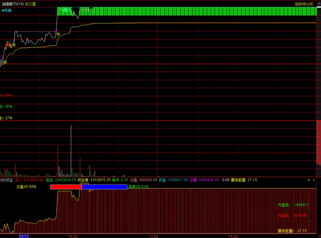- 暴涨能量:核心信号!主力大单净差值,数值越高,主力拉升意愿越强,暴涨潜力越大;