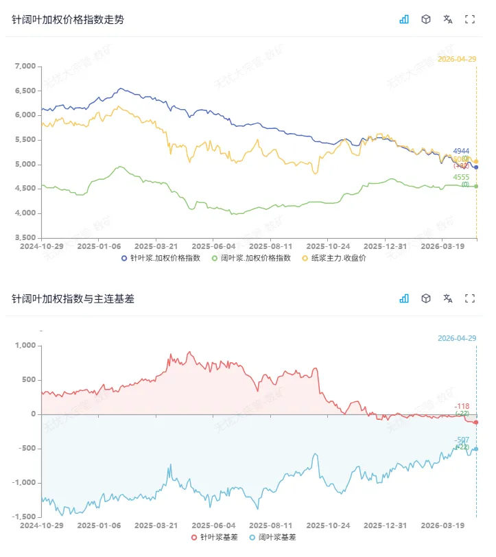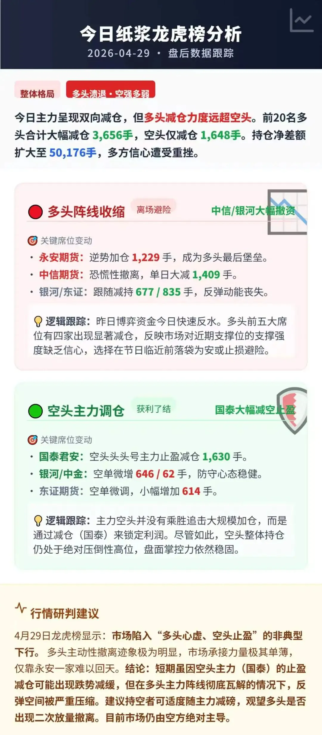 市场摘要:今日纸浆SP05合约小幅震荡,针叶青岛银星基差07+0附近,常熟银星基差07+60附近,成交清淡。阔叶浆报价维持4580附近,节前多观望。期货端今日主力呈现双向减仓,但多头减仓力度远超空头。前20名多头合计大幅减仓 3,656手,空头仅减仓 1,648手。