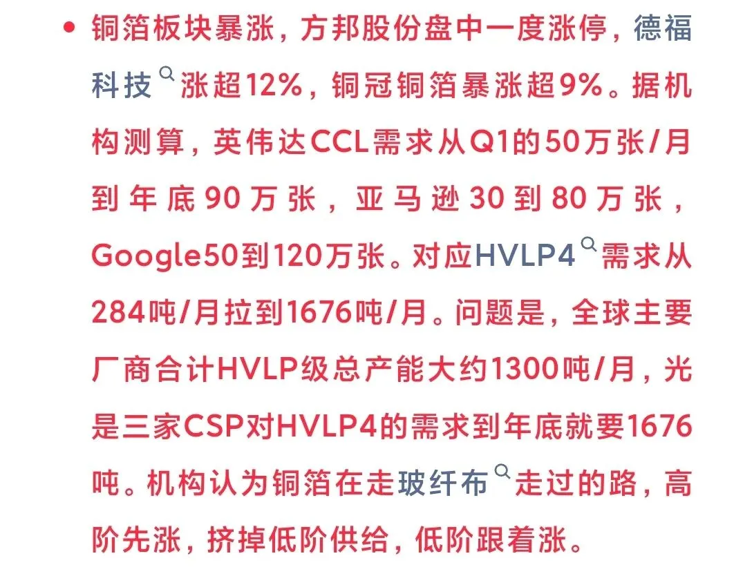 周一跟大家分享过铜箔的逻辑,铜冠铜箔在昨天暴涨15%后,今天20cm涨停。值得一提的是,虽然胜宏科技一季报没有那么惊艳,但今天盘中一度涨超9%,机构预期胜宏二季度将会释放业绩,所以这算是一季报落地买二季度的逻辑。