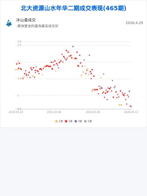 图中呈现出非常标准的“倒V型”走势。小区曾经历过单价逼近2.5万的“高光时刻”,但随着市场调整,价格一路向下俯冲,如今底部成交价已经下探至1万甚至更低。这说明前期附着的投资泡沫已被彻底挤出,价格跌回了多年的起跑线。