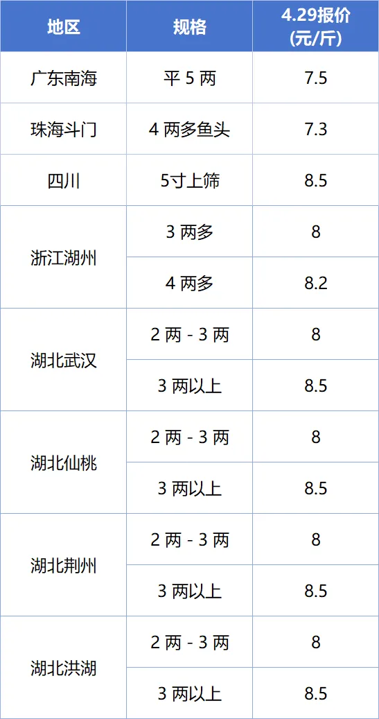 2026年4月29日多品种塘口报价|南美白对虾、金刚虾、罗氏沼虾、花虾、淡水澳龙、小龙虾、鳜鱼、加州鲈、黄颡鱼、生鱼、鳗鱼、石斑鱼、大黄鱼、牛蛙等,覆盖多品类,一站式查阅。