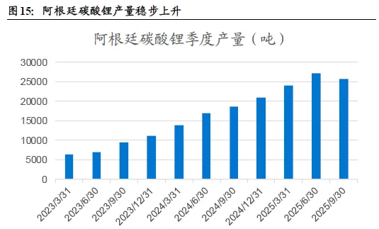 阿根廷目前已经投产的锂矿有7个,主要为赣锋锂业的C-O、Mariana盐湖、紫金矿业的3Q 和浦项的Sal de Orode等。阿根廷目前正在建设的碳酸锂产能包含力拓的Sal de Vida、Rincón项目等。目前阿根廷在产项目的爬坡仍在进行中,随着在建项目的逐步落地,阿根廷碳酸锂产量将稳步提升。