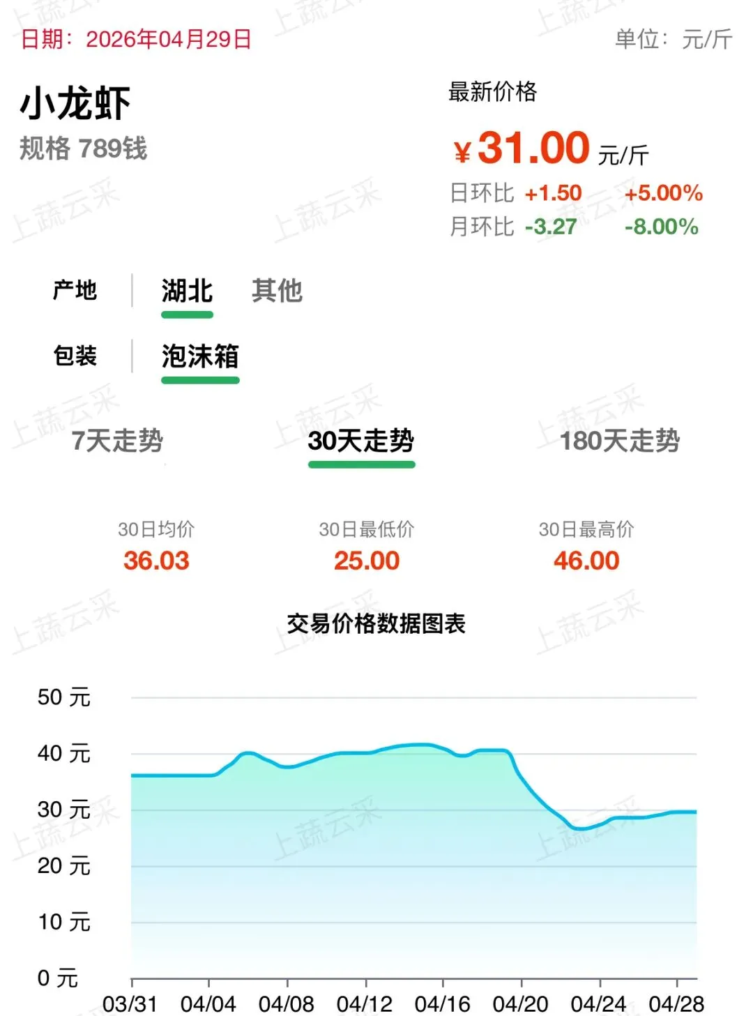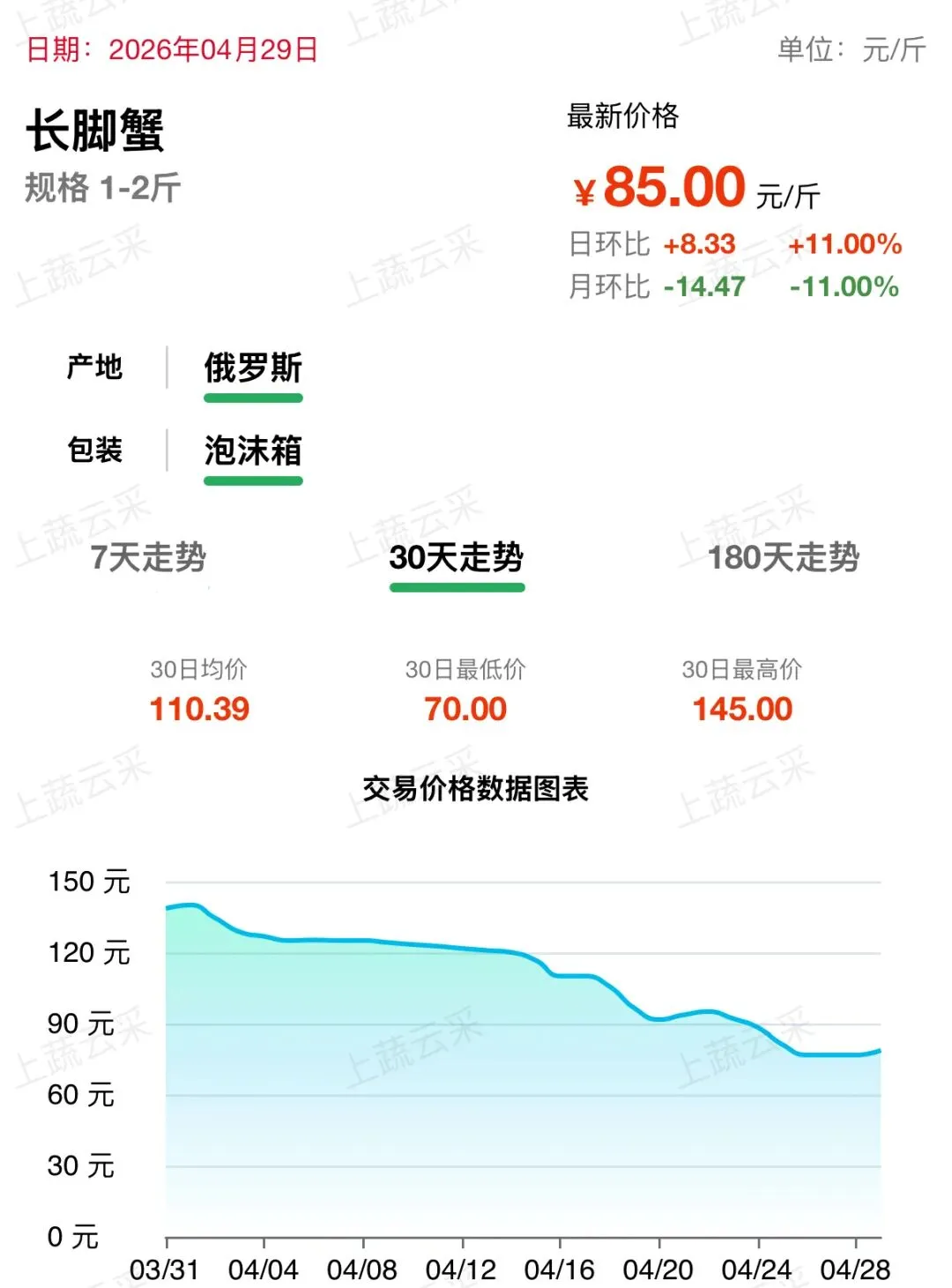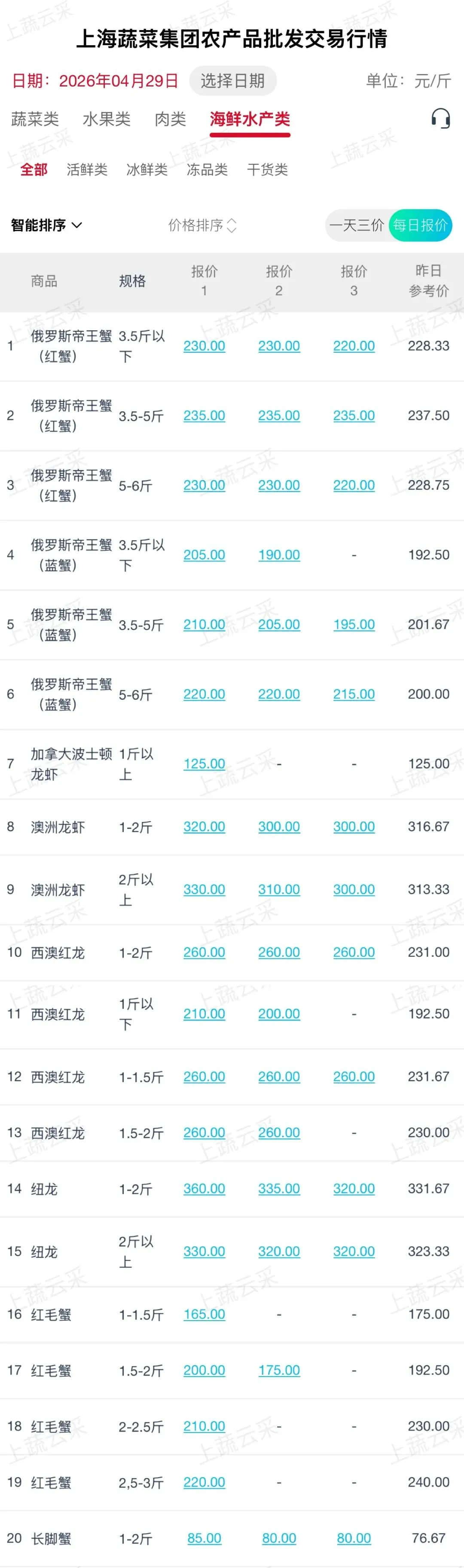 蔬菜、水果、肉、海鲜水产等更多品类交易行情