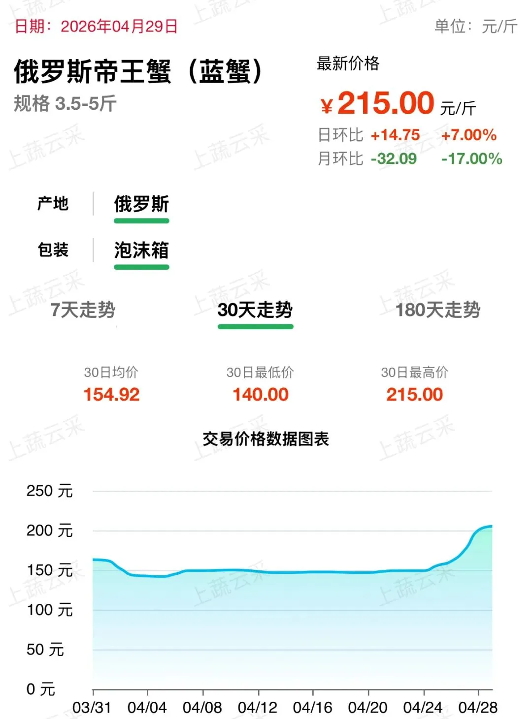 俄罗斯帝王蟹批发交易行情走势