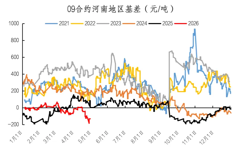 基差方面:今日现货市场主流报价稳定,期货收盘价下跌;以河南地区为基准,基差环比上个交易日走强,9月合约基差-127元/吨(+4元/吨)。