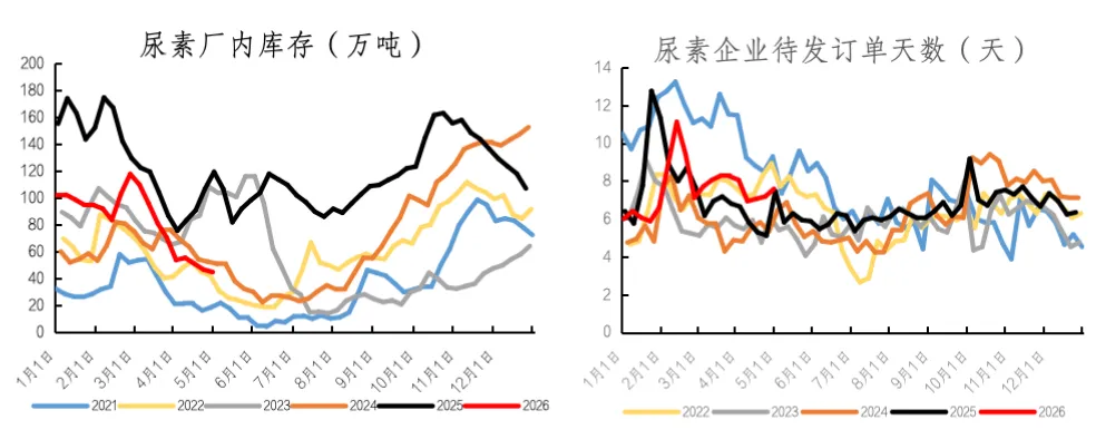 预售订单天数:根据隆众资讯,截至2026年5月1日,中国尿素企业预收订单天数7.59日,较上周期增加0.41日,环比增加5.71%。