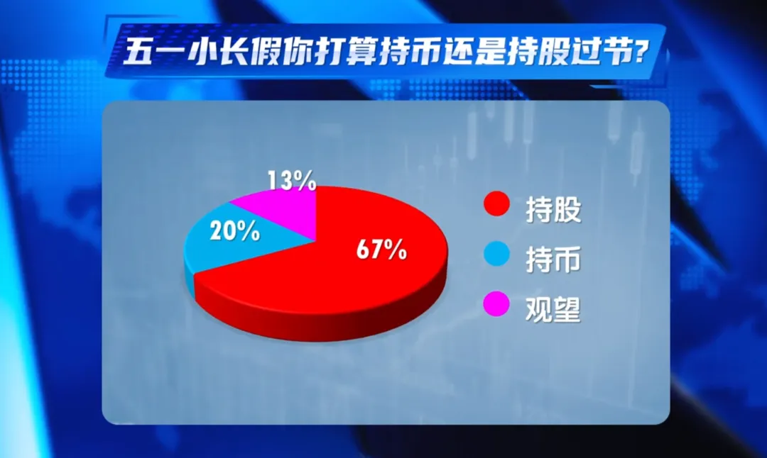 调查结果显示,打算持股过节的投资者占了67%,想空仓持币的占20%,观望的占13%。