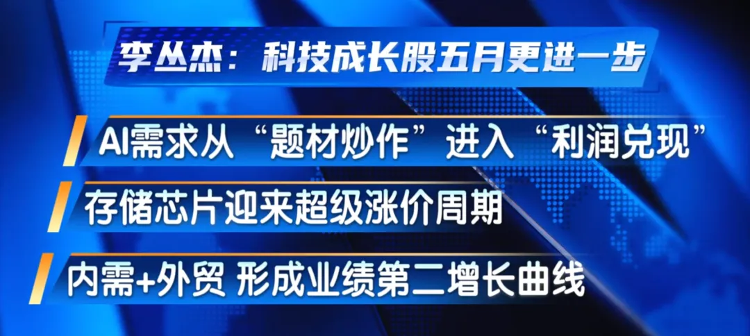 现场嘉宾李丛杰认为,科技成长股五月更进一步: