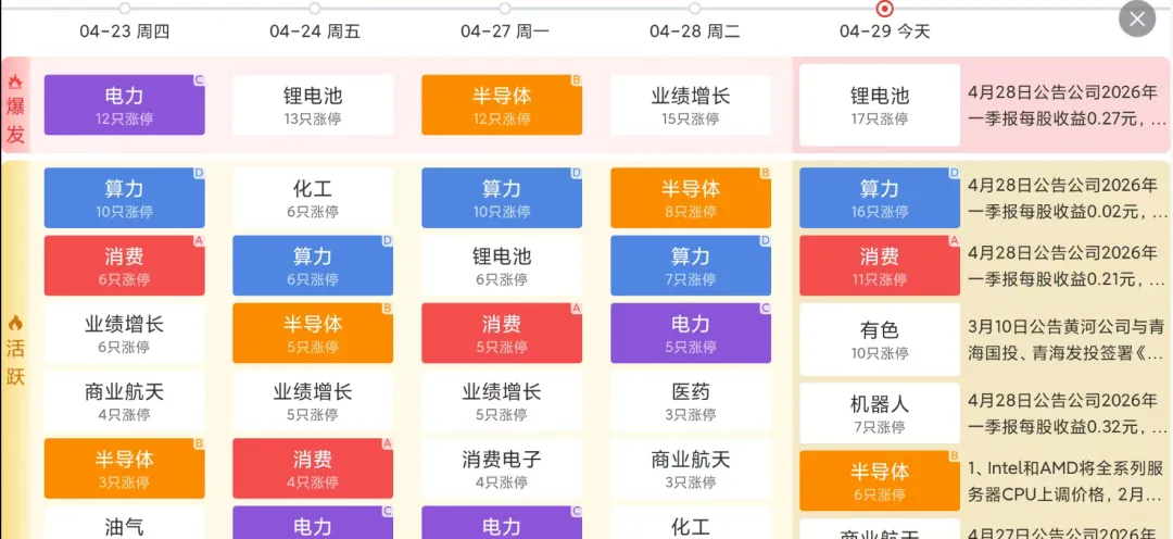 结论:全天6家涨停!受昨晚美半导体大跌影响,板块回踩10日线消化后,资金回流做趋势修复。整体走的是高景气度主线趋势大为主。