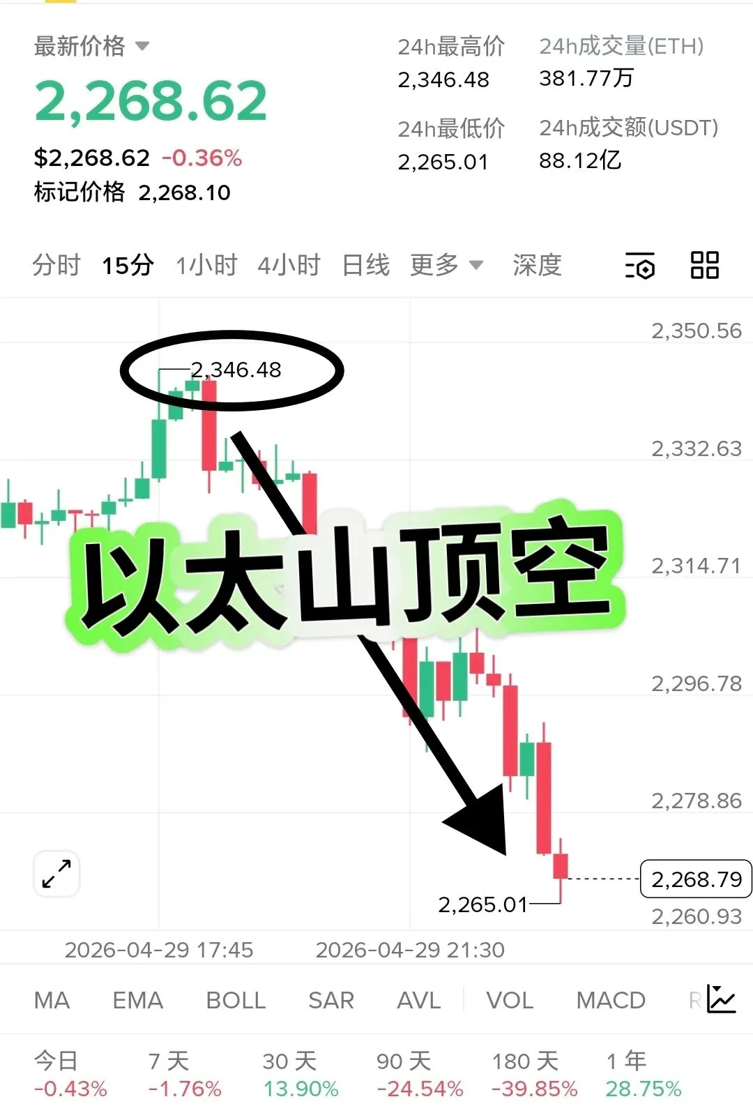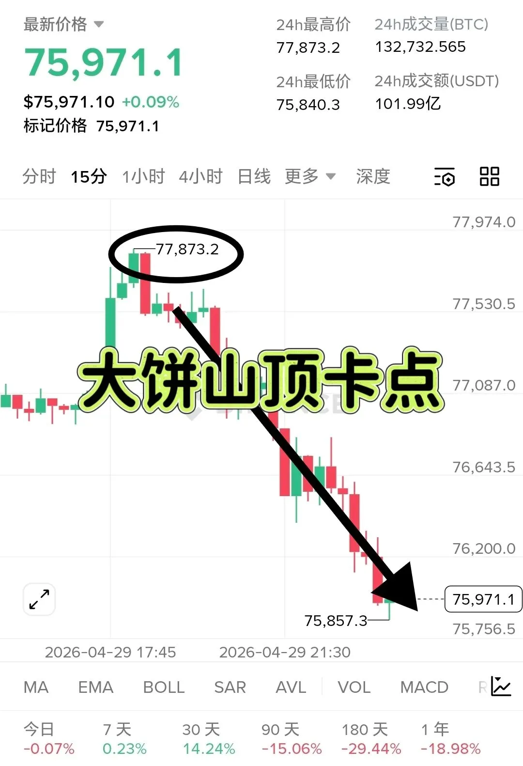 午后思路已提前做出预告,高空卡点大饼7780以太2340回踩昨日最低点,目前已有2000点空间,以太同步90点,走势已基本走出,带好底仓保护,合理去抓每波行情