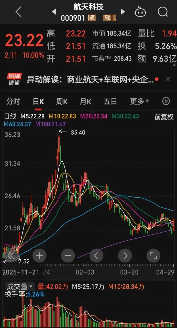 马上就是五一长假,不少朋友都在纠结要不要持股过节。我的看法是,当下市场重回科技主线,热点方向很明确,只要选对标的,持股过节完全可行。像上面提到的航天科技、常山药业,分别贴合科技主线和热门题材,基本面和走势都没大问题,大家可以根据自己的仓位合理布局。