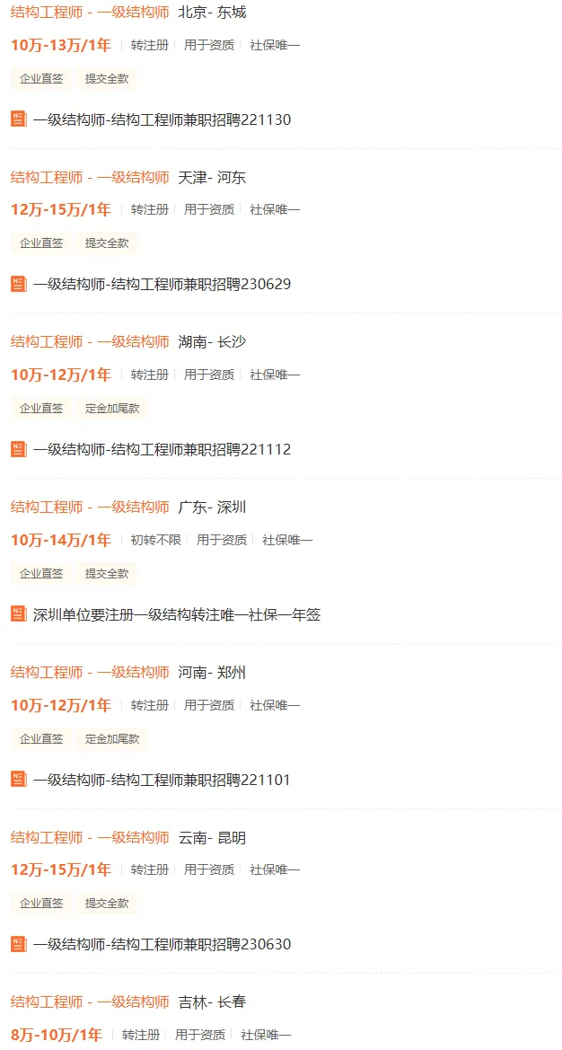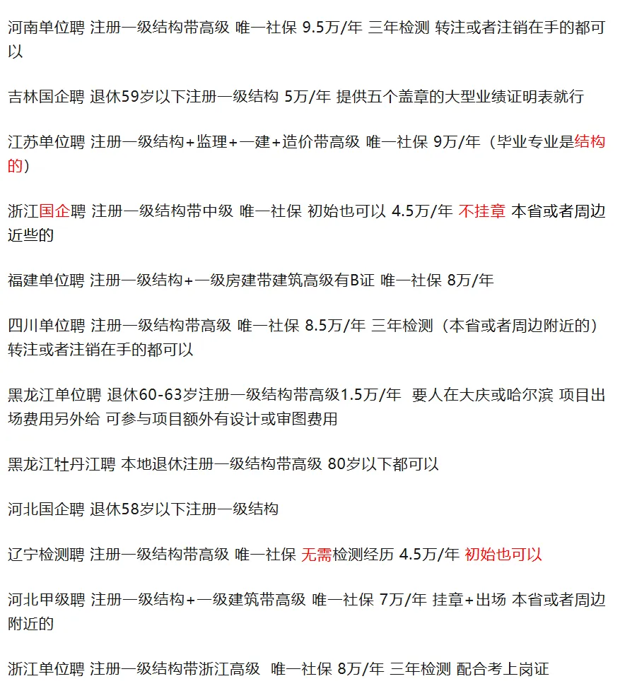 还有,有些省份动态核查资质,时不时会公布哪些单位缺什么证书,也是一个渠道台。岩土结构有哪些渠道找单位兼职/全职看看哪些单位要岩土结构,要多少?