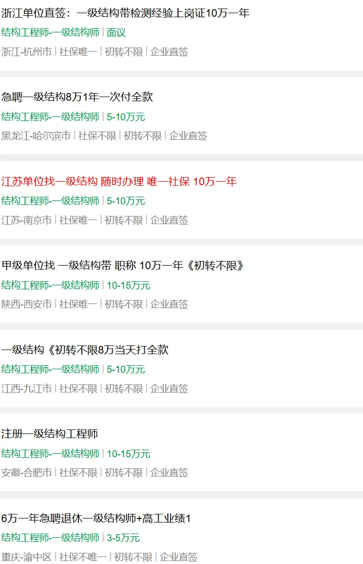 本文所贴信息来自于招聘网站、guakao网站、土木类公众号、微信群、QQ群等渠道汇总的信息,有很高的也有很低的。大部分都是真实的,当然少不了用高价吸引加联系方式的中介。