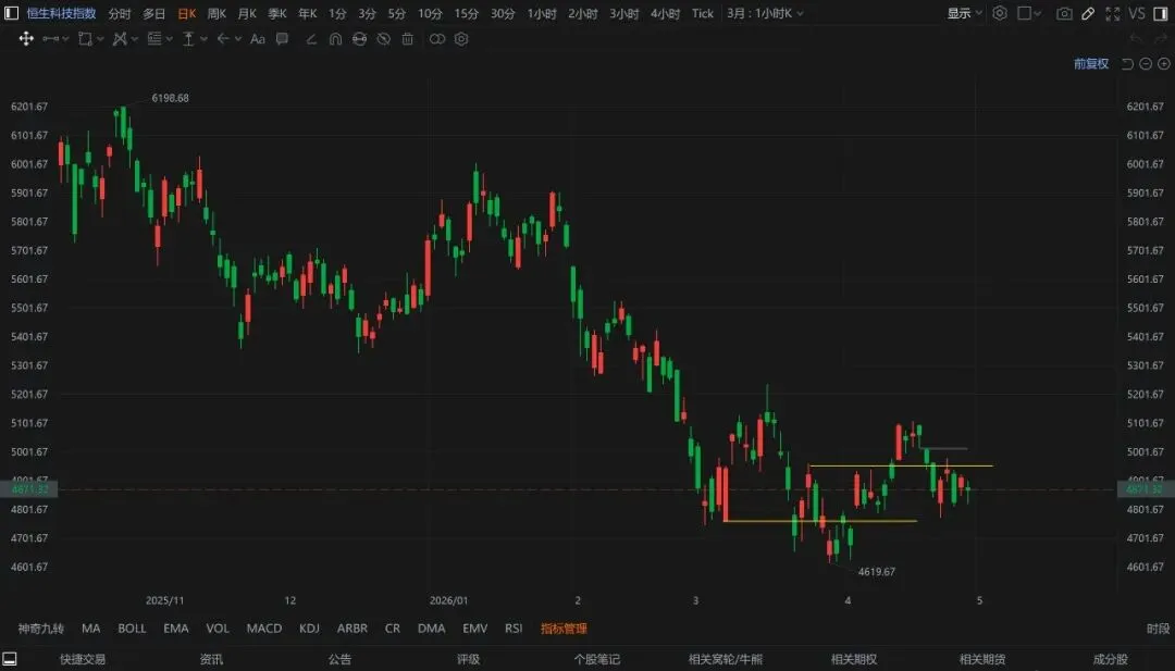 恒生科技也继续在低位横盘