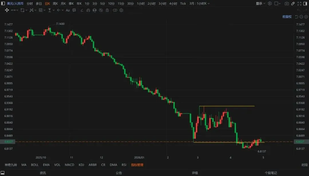 美元/人民币继续在低位运行