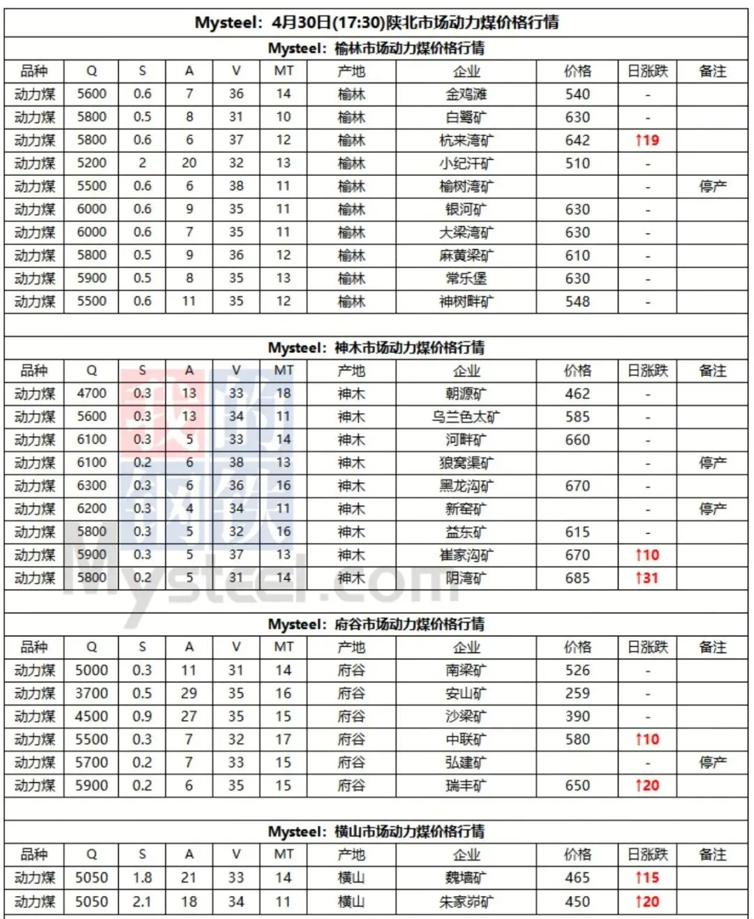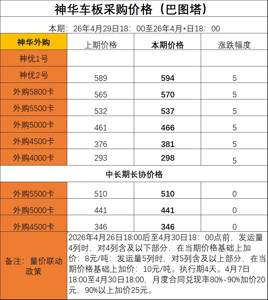 30日港口动力煤报价偏强运行。大集团外购价大幅补涨,支撑市场挺价情绪,贸易商报价继续坚挺上扬,市场可售低卡货源紧俏,刚需成交下拉动价格重心快速上移。但多数下游用户对高价拿货较为谨慎,优先以长协拉运为主,在上游挺价捂货与下游接货能力不佳僵持下,市场实际成交较少。需重点关注假期期间港口库存情况及终端耗存变化。
