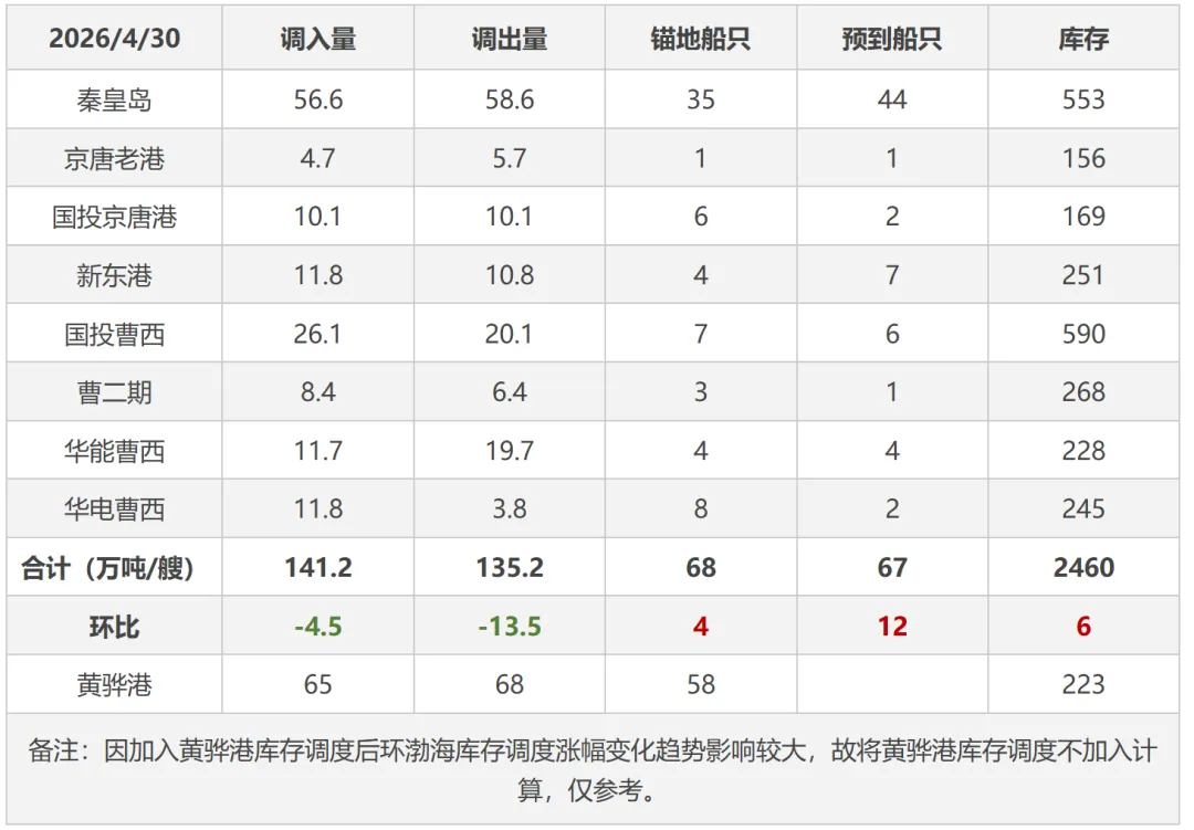 下雨方面,近期受区域气温回升、工业用电平稳支撑,以及新能源出力稳定性不足等多方因素共同支撑,淡季沿海电厂日耗同比向上,库存累库节奏明显慢于往年。天气方面,4月30日-5月3日,青藏高原、西北地区东部、黄淮南部及南方地区自西向东有大范围降雨天气过程,其中江南、华南中北部等地有大到暴雨,局地并伴有雷暴大风、短时强降水等强对流天气,强降雨时段主要在5月2-3日。
