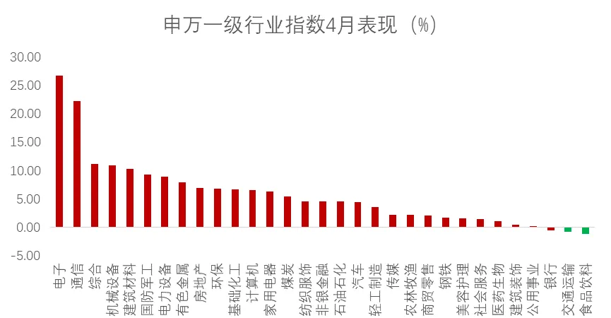 回顾4月,市场整体呈现先抑后扬的震荡修复格局。月初受外部扰动与一季度数据披露前的谨慎情绪影响,主要指数承压回调,成交量阶段收缩。随着外围局势缓和、国内稳增长政策持续发力,月中流动性预期改善,叠加部分行业景气度回升信号显现,市场风险偏好逐步修复。下旬在年报与一季报密集披露窗口期,资金聚焦业绩确定性。