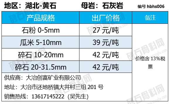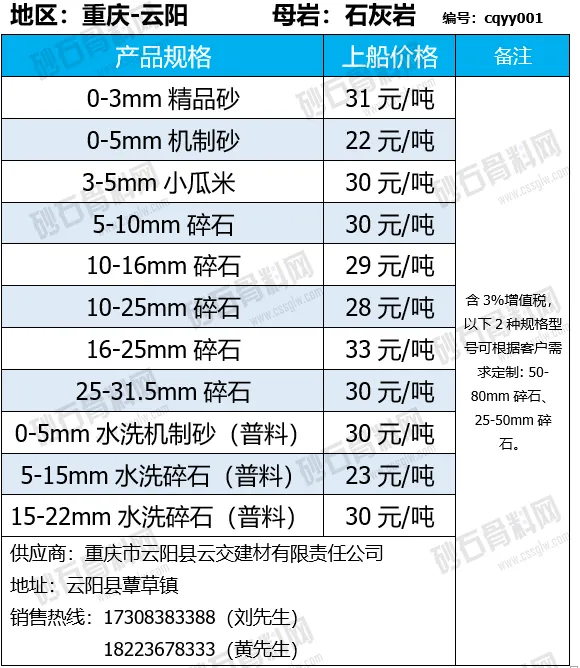 骨料在线出厂报价是“互联网+砂石”生态圈重要一环,也是砂石骨料网致力于砂石互联网化的核心内容组成。旨在帮助广大砂石需求商(搅拌站、工程建设单位、砂石贸易商等)以更快捷、更高效、更优惠的方式来获取优质的砂石产品,同时为诚信优秀的砂石企业打开一扇创新之窗。为此砂石骨料网数据中心特推出砂石行情通服务。组织砂石生产企业进行实时出厂价报价,为砂石企业提供展示平台,为需求单位提供采购通道及预决算依据。更多一手砂石企业货源查找,欢迎登录砂石行情通(www.cssglw.com/price)或砂石数据中心小程序获取。