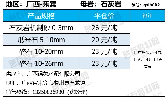 受篇幅限制,部分区域砂石企业出厂价未展示,更多砂石企业出厂价格尽在砂石数据中心微信小程序。